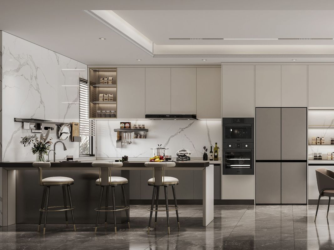 অন্তর্ভুক্ত অ্যাপ্লায়েন্সবিল্ট-ইন ওভেন, কুকটপ এবং রেফ্রিজারেটরের মতো উন্নত অ্যাপ্লায়েন্সগুলিকে একীভূত করার বিকল্প, আধুনিক মিনিমালিস্ট ডিজাইনের সাথে সারিবদ্ধ।
