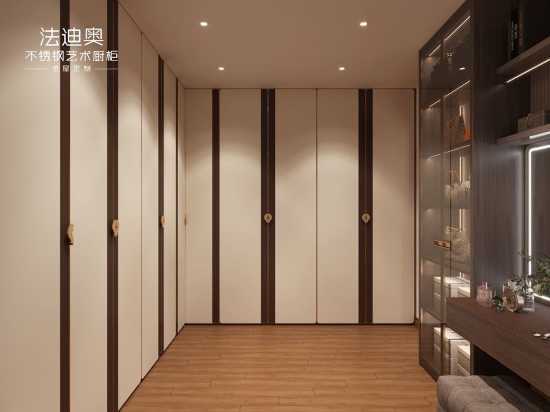| ওয়ার্ডরোব লেআউট | U আকৃতির নকশা যা স্টোরেজ স্পেসকে সর্বাধিক করে তোলে এবং একই সাথে একটি সুশৃঙ্খল এবং সংগঠিত চেহারা বজায় রাখে, রুমের বিন্যাস অপ্টিমাইজ করার জন্য উপযুক্ত। |