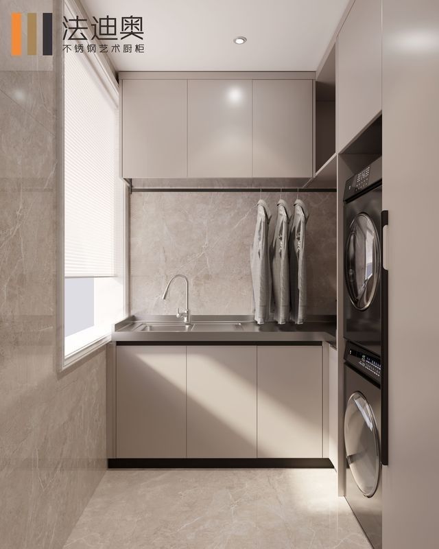| - বায়ু-শোষক কাপড়ের জন্য ঝুলন্ত রেল সরাসরি সিঙ্ক উপরে - স্ক্র্যাচ প্রতিরোধী এবং স্বাস্থ্যকর স্টেইনলেস স্টীল countertop যন্ত্রপাতি সামঞ্জস্য | সামনের লোড ওয়াশিং মেশিন এবং ড্রায়ার (যেমন দেখানো হয়েছে) |