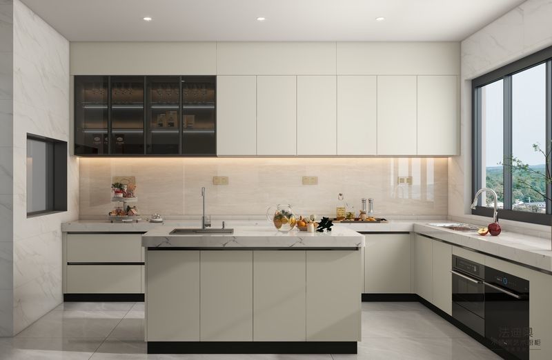 | ক্যাবিনেটের ধরন | একটি দ্বীপের সাথে পূর্ণ উচ্চতা ইউ আকৃতির ক্যাবিনেট, স্টোরেজ এবং কার্যকারিতা সর্বাধিকীকরণ। |