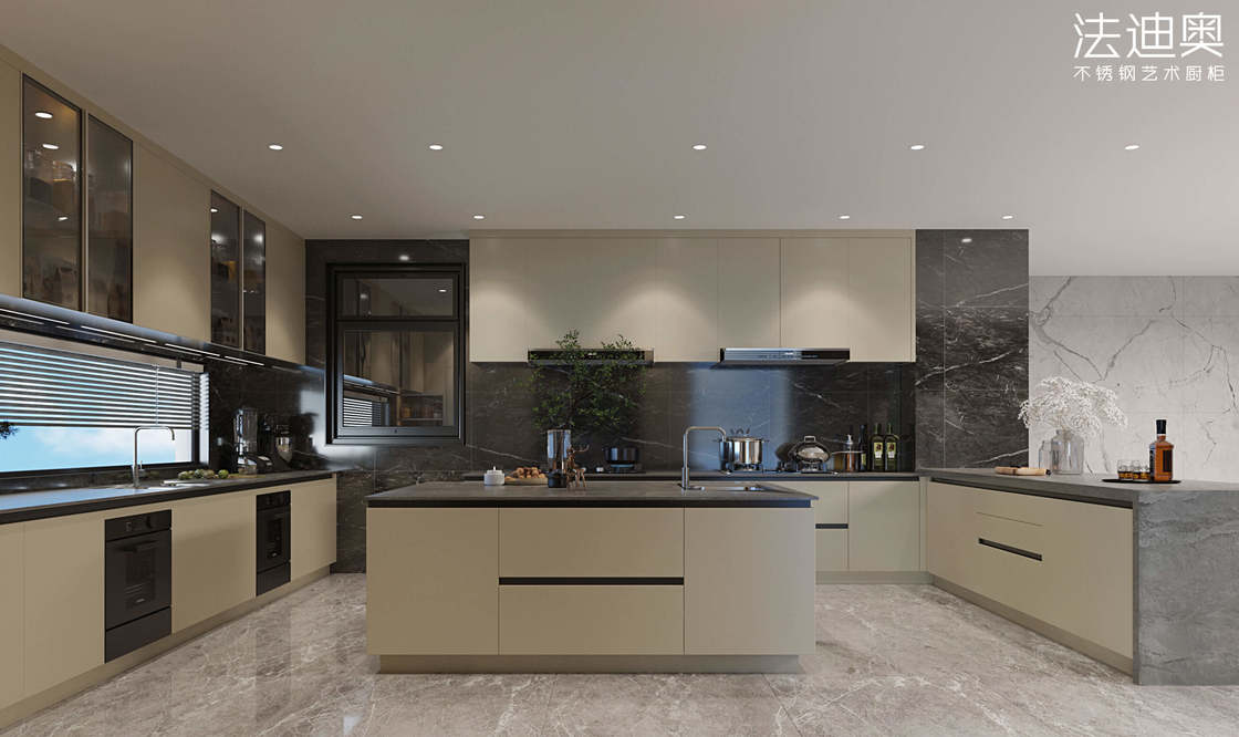এই কিচেন ক্যাবিনেটকে একটি জেনেরিক SKU-এর পরিবর্তে একটি ডিজাইন-চালিত সিস্টেম হিসাবে উপস্থাপন করা হয়েছে। এটি প্রিমিয়াম আবাসিক প্রকল্পগুলির জন্য আরও সুসংহত ভিজ্যুয়াল পরিচিতি তৈরি করতে একটি নিয়ন্ত্রিত ফিনিশ প্যালেট এবং স্টেইনলেস স্টিলের ক্যাবিনেট কাঠামোর সাথে ব্যবহার করা হয়েছে।