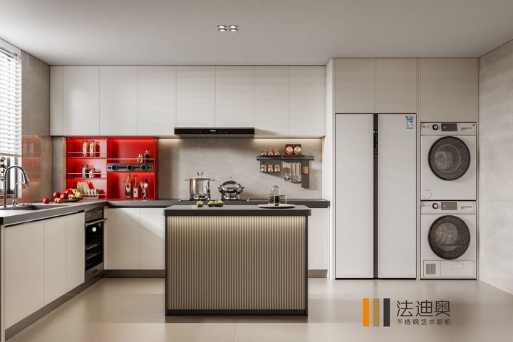 এই কিচেন ক্যাবিনেটকে একটি জেনেরিক SKU-এর পরিবর্তে একটি ডিজাইন-চালিত সিস্টেম হিসাবে উপস্থাপন করা হয়েছে। এটি প্রিমিয়াম আবাসিক প্রকল্পগুলির জন্য আরও সুসংহত ভিজ্যুয়াল পরিচিতি তৈরি করতে হোয়াইট এবং স্টেইনলেস স্টিলের ক্যাবিনেট কাঠামোর সাথে ব্যবহার করা হয়েছে।