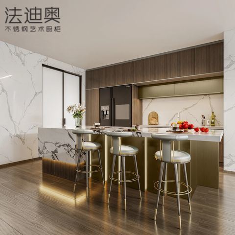 এই রান্নাঘরের ক্যাবিনেটকে একটি জেনেরিক SKU-এর পরিবর্তে একটি ডিজাইন-চালিত সিস্টেম হিসাবে উপস্থাপন করা হয়েছে। এটি প্রিমিয়াম আবাসিক প্রকল্পগুলির জন্য আরও সুসংহত ভিজ্যুয়াল পরিচয় তৈরি করতে উড কালার এবং স্টেইনলেস স্টিল ক্যাবিনেট স্ট্রাকচার ব্যবহার করে।