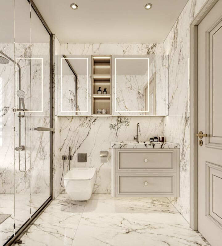 | রঙের স্কিম | সমস্ত সাদা ক্যাবিনেট দরজা, যা পরিমার্জিত বাথরুমের অভ্যন্তরের জন্য উপযুক্ত একটি উজ্জ্বল, পরিষ্কার চেহারা তৈরি করে। |