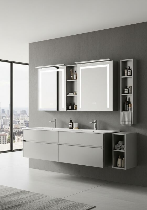 | ব্যবহার | শহুরে অ্যাপার্টমেন্ট, লফ্ট রূপান্তর, শিল্প শৈলী আবাসিক প্রকল্প এবং স্থপতি-ডিজাইন আতিথেয়তা স্থানগুলির মধ্যে মাস্টার বাথরুমের ভ্যানিটিগুলি দীর্ঘস্থায়ী, স্বাস্থ্যকর,দৃশ্যমানভাবে সংরক্ষিত স্টোরেজ |