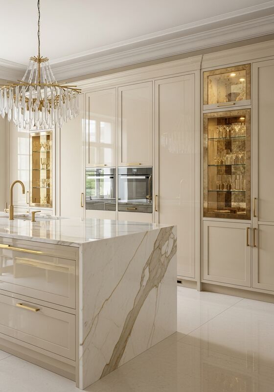 বিলাসবহুল বাসস্থান / আতিথেয়তা স্যুট / এবং উষ্ণতা চালিত ডিজাইনার শোরুমের জন্য বিবৃতি রান্নাঘর দ্বীপ |